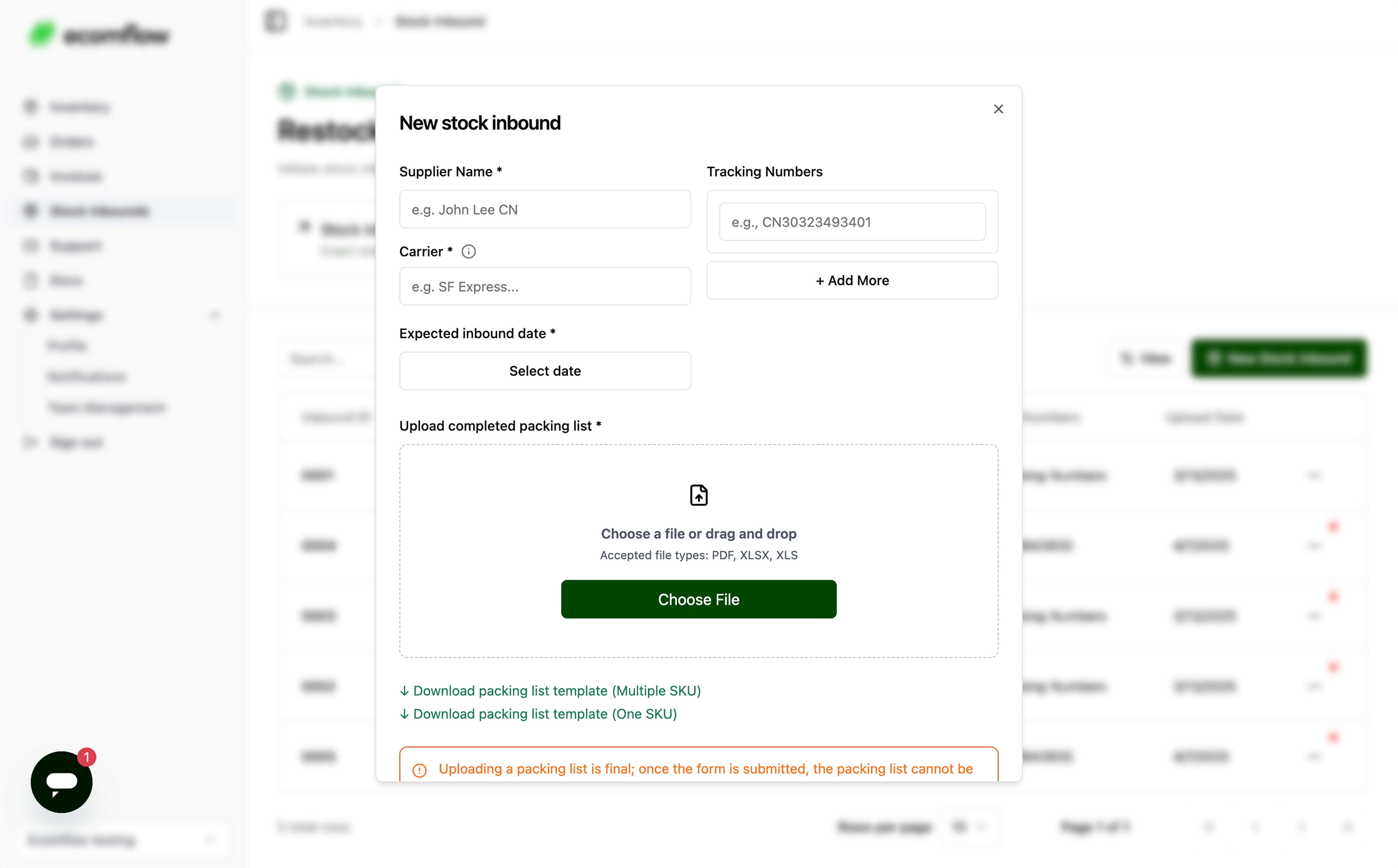 Managing incoming stock shouldn’t feel like navigating a black hole. Now, with our new Stock Inbound feature, you can submit purchase orders directly through the dashboard and track every step of the process—from supplier to warehouse—without the hassle. Real-time updates mean you’ll always know exactly when your stock is ready to fulfill customer orders.