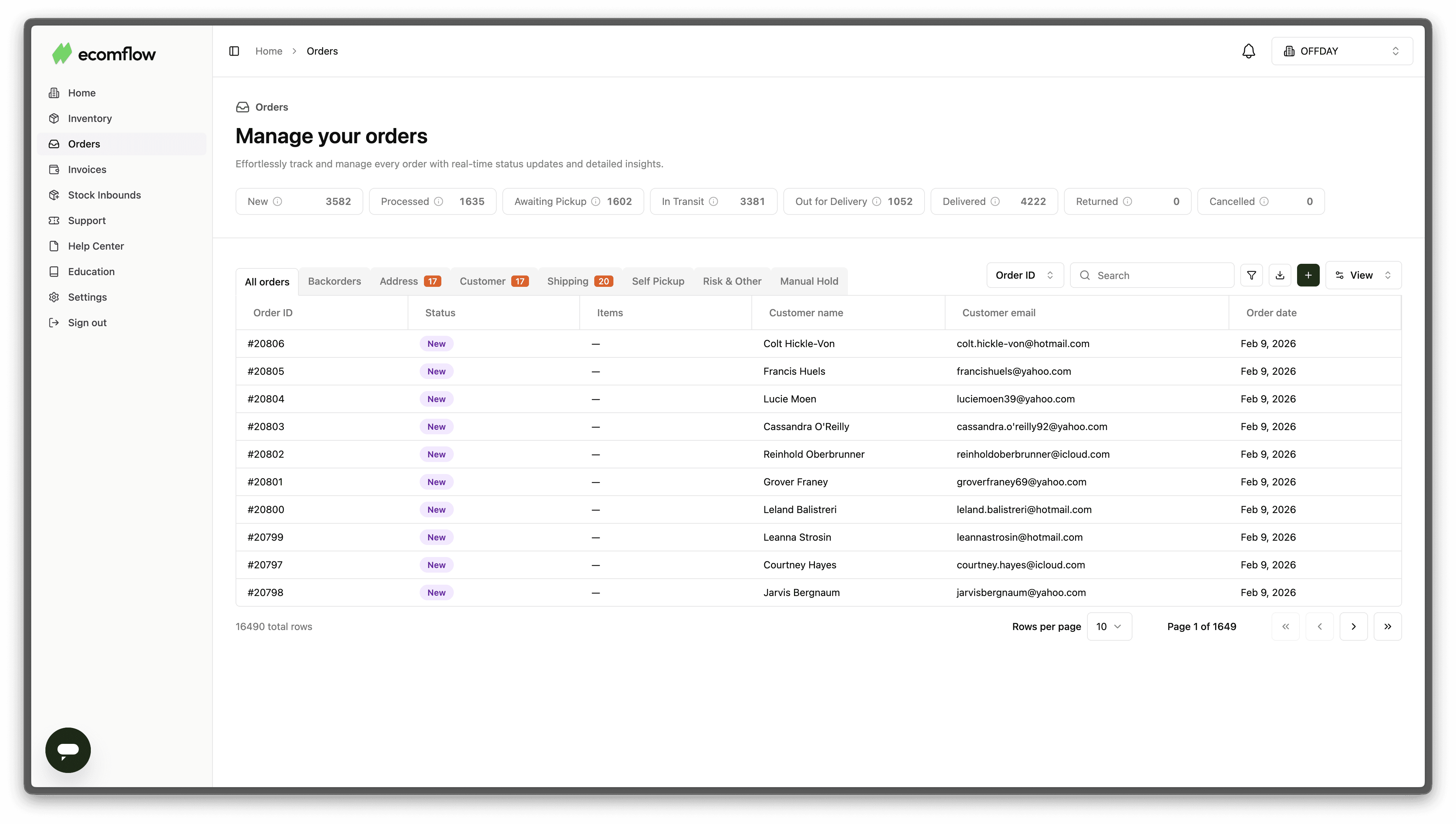 Managing orders across fulfillment shouldn't mean hunting for information, back-and-forth emails with your 3PL and days of waiting - all while your customers wonder where their orders are.