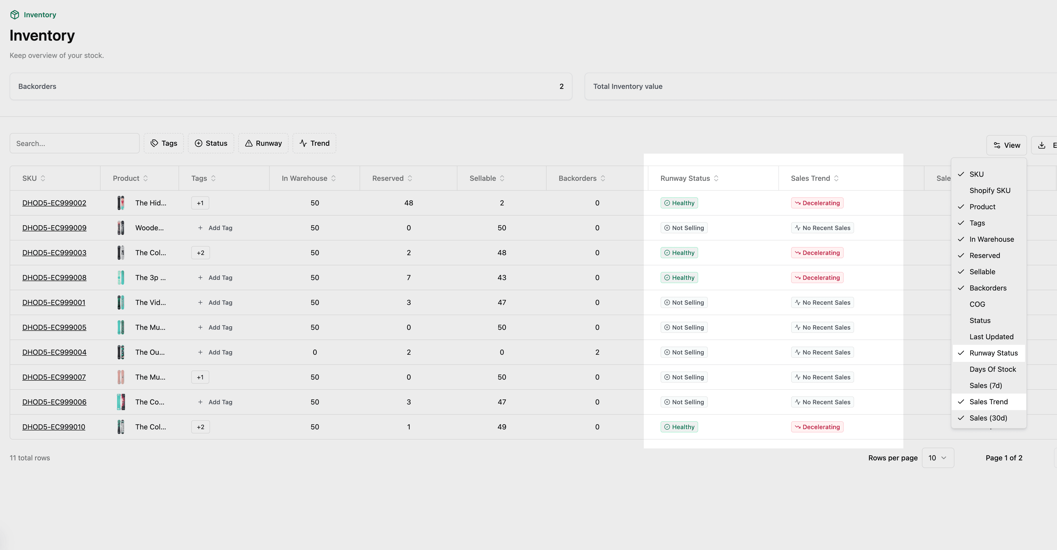 Open your Dashboard, head to Inventory, and explore the new Runway & Sales Metrics section.